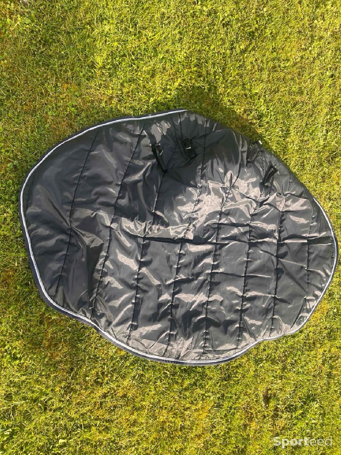 Je vend l’ensemble couverture avec couvre coup Porter deux fois ne convient pas à la morphologie de mon cheval